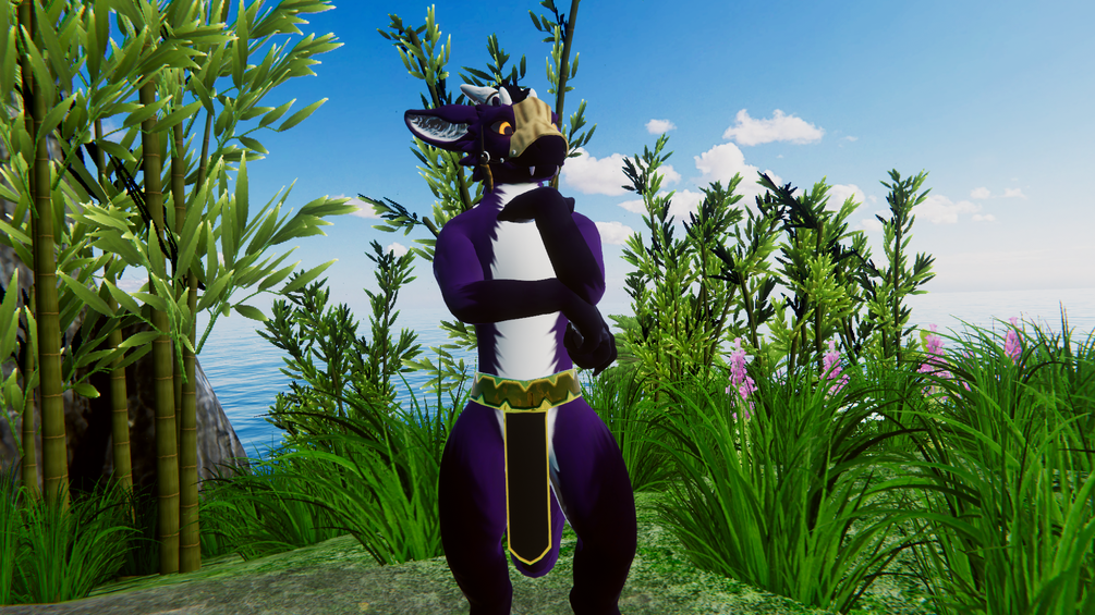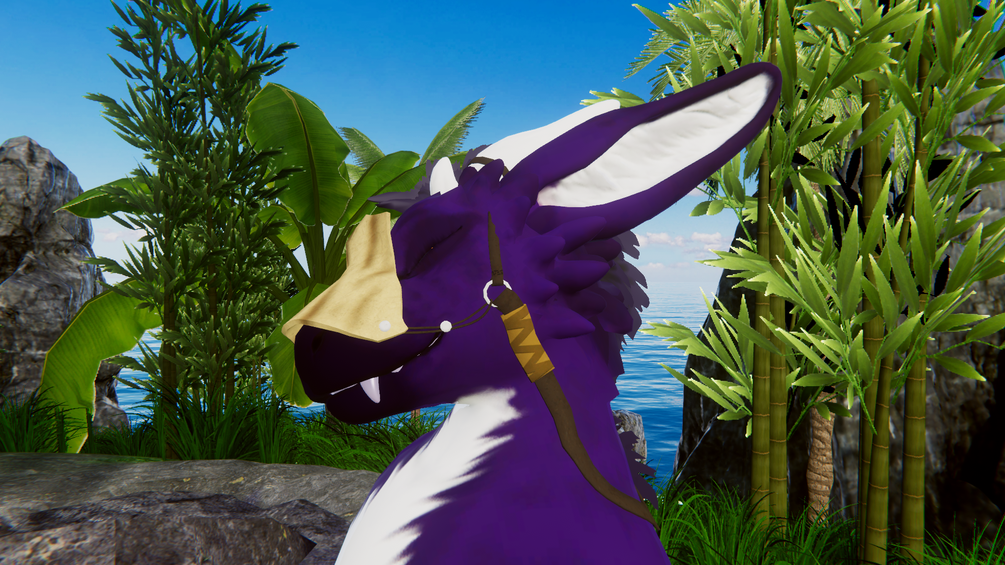 Background world is "Just Beach Party - Day" by Kadeko. It's very cool I like it :3 https://vrchat.com/home/world/wrld_8626bb5d-4560-4e4c-9539-c19a2da50874